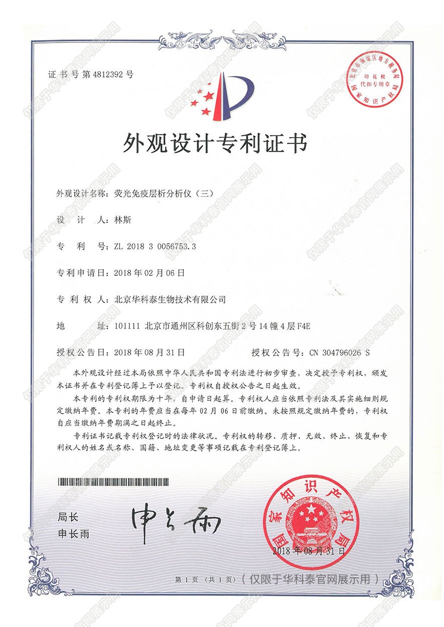 实用新型专利证书- 诊断早期急性心肌梗塞 标志物的联合检测卡